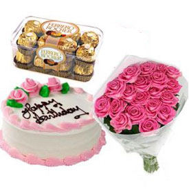 Miss u honey12 Pink Roses Bouquet with mocha caramel 1 kg and Ferrero Rocher 16-pcs the cake is from 5-star hotel |