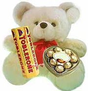 Bear w/ ChokExpress your longing for her across the miles. Let her feel how you feel about her even if you are far away. Send her Miss you "Beary" much bear, it will surely make her think of you across the miles. Includes a Super soft 9 " cuddly bear, 1 pack 6-50g Toblerone bars and a Ferrero Chocolate. |