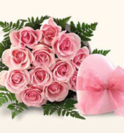 Rose and Chocolate For your Mom12 pink roses with heart shape chocolate(hershey kiss) box. Very decent to be given as a gift or just to give an unforgettable surprise. |