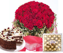 Sending thisLong to see your special person once more? Let her know it by sending her these 36 of red roses with gorgeous glass vase,24 pcs ferrero rocher chocolate and chocolate torte cake. Your gift will come with a greeting card and your message. |