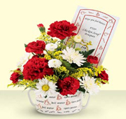 Crazy for YouWhat better way to help someone feel better than sending flowers and chicken soup. This arrangement of red carnations and white daisies arrives in a decorative ceramic soup bowl and includes a packet of chicken soup. A great gift for any age. |