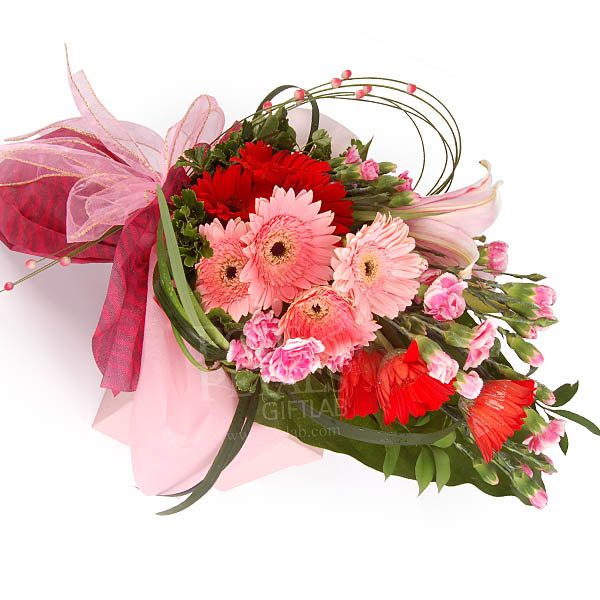 SeraphinLilies, passion red and pink gerberas and Carnations to make her day. |