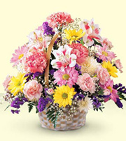 Spring basketThis classic garden style basket, truly remind full of beautiful flowers garden. mix seasonal flower arranged in wicker basket. |