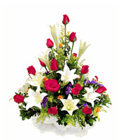I Wish You HappinessTwelve stems red roses, ten stalks white lilies, nine red carnations, flower baskets arrangement The picture is only for reference and the main items are the same, the effect is guaranteed. |