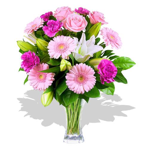 SOFTA delightful bouquet which is stunningly arranged and includes pink flowers with some white lilies - a perfect combination for a sweet flower bouquet! |